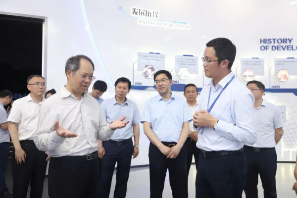 隨后,陶長海一行前往智能制造三元八車間參觀,了解了車間智能化和數字化作業現場,并通過大數據平臺實時查看了“人、機、料、法、環”的運轉情況、中偉自主研發的自動化生產設備情況,鳥瞰了中偉在貴州銅仁總部的原料廠區、材料廠區、環保廠區、高冰鎳項目的區域分布情況。